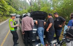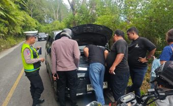Polisi Sigap Bantu Wisatawan, Mobil Mogok di Jalur Perbukitan Samosir Berhasil Dievakuasi