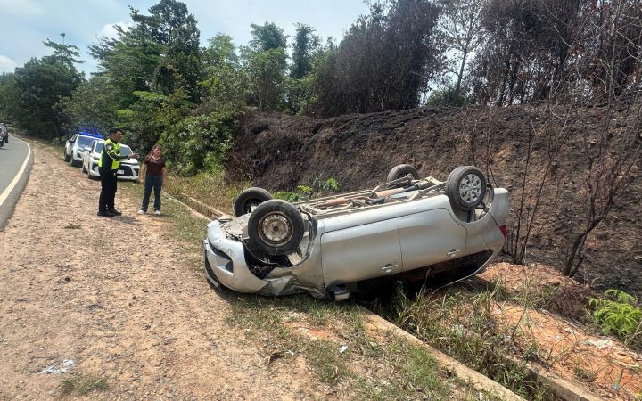 Quick Respon Polsek Nongsa Tangani Laka Tunggal Akibat Pecah Ban di Jalan Hasanuddin