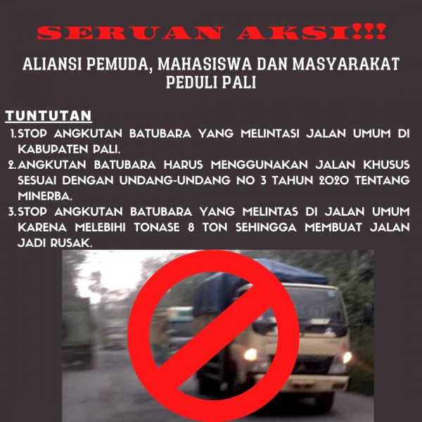 PALI, Sumsel – Beredar seruan aksi di media sosial oleh Aliansi Mahasiswa Masyarakat Pemuda Peduli Pali akan menggelar unjuk rasa dengan tuntutan di antaranya tentang angkutan Batubara yang melintas di jalan umum.