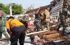 Koramil Bersama Warga Kerja Bakti Bersihkan Puing-Puing Waterbom