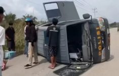 Mobil Tahanan Polsek Mandau Terguling di Jalan Dumai–Sei Pakning, Dua Polisi Luka Ringan