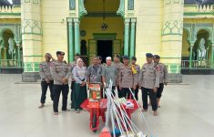 Brimob Polda Sumut dan Polres Langkat Bersihkan Masjid Pascabanjir, Salurkan Bantuan ke BKM Masjid Azizi