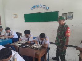 SURAKARTA – Babinsa Kelurahan Joyotakan Koramil 03/Serengan Kodim 0735/Surakarta, Serka Sudiyono, terlibat langsung dalam pendampingan pendistribusian Program Makanan Bergizi Gratis (MBG). Kegiatan ini dilaksanakan di SMP Islam Bakti, Jalan Wahid Hasim RT 03 RW 01, Joyotakan, Serengan, Kota Surakarta, pada Kamis (27/11/2025), pukul 10.00 WIB.