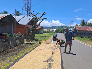 Kegiatan tersebut difokuskan pada proses penjemuran padi milik salah satu warga, Jalil Kuntuamas. Tahapan ini menjadi bagian penting pasca panen guna menjaga kualitas gabah sebelum memasuki proses berikutnya. Kehadiran Babinsa di tengah aktivitas petani tidak hanya membantu secara fisik, tetapi juga memberikan semangat serta mempererat hubungan antara TNI dan masyarakat.