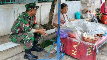 Surakarta – Babinsa Kratonan Koramil 03/Serengan Kodim 0735/Surakarta, Kopka Resbiyanto, melaksanakan Komunikasi Sosial (Komsos) bersama pedagang makanan, Ibu Rini Widyastuti, di RT 01/RW 05 Kelurahan Kratonan, Kecamatan Serengan, Kota Surakarta, pada Jumat (3/10/2025) pukul 09.00 WIB.