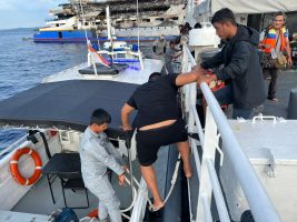 Manado — Bakamla RI melalui unsur KN Gajah Laut-404 dan HSC 32-03  melakukan aksi cepat tanggap darurat dalam membantu proses evakuasi penumpang KMP Barcelona 5 yang mengalami musibah kebakaran di perairan Pulau Talise, Kecamatan Likupang Barat, Kabupaten Minahasa Utara (Minut), Minggu (20/7/2025).
