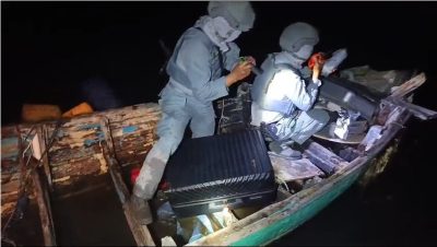 Pada pukul 02.10 WIB, tim VBSS berhasil mengidentifikasi kontak kapal tanpa awak pada jarak 1,0 NM dengan baringan 252° di posisi 06°04’25” S – 106°45’32” E. Tim segera melakukan pemeriksaan dan penggeledahan terhadap kapal yang diduga telah ditinggalkan oleh pelaku.