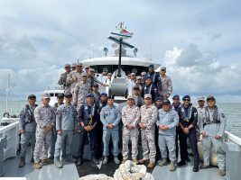 Selat Malaka, 19 September 2025 – Kapal Negara (KN) Belut Laut-406 yang dikomandani Letkol Bakamla Haslul Prio Widiatmoko melaksanakan Rendezvous (RV) dengan KM Marudu milik Agensi Penguatkuasaan Maritim Malaysia (APMM) dan PA 14 dari Pasukan Polis Marin (PPM) PDRM, di utara Pulau Iyu Kecil, Selat Malaka.