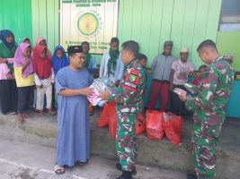 Jayawijaya – Kepedulian Satgas Kodim Yalimo Yonif RK 751/VJS dalam meningkatkan pelaksanaan ibadah bagi para santriwan dan santriwati yang ada di Pesantren Al-Istiqomah, diwujudkan dengan membagikan pakaian berupa baju koko dan mukena kepada seluruh para santri.