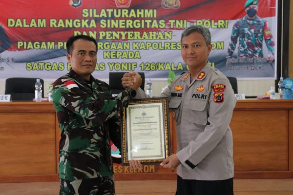Keerom, Papua – Berhasil menjaga stabilitas keamanan di wilayah perbatasan, Dansatgas Yonif 126/KC Letkol Inf Dwi Widodo, S.H., M.Han. menerima piagam penghargaan dari Kapolres Keerom AKBP Christian Aer, SH., S.I.K. yang di laksanakan di Aula Polres Kab. Keerom. Hal tersebut disampaikan Dansatgas Pamtas Yonif 126/Kala Cakti, Letkol Inf Dwi Widodo, S.H., M.Han. dalam rilis tertulisnya di Kabupaten Keerom, Papua, Jumat (02/09/2022).