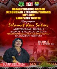 Tolitoli, titahnews.com Sulteng | – Badan Pengurus Daerah (BPD) Kerukunan Keluarga Pinrang (KKP) Kabupaten Tolitoli menyampaikan ucapan selamat dan sukses atas penyelenggaraan Musyawarah Daerah (Musda) Badan Pengurus Daerah Kerukunan Keluarga Sulawesi Selatan (BPD KKSS) yang akan digelar di Kabupaten Tolitoli pada tanggal 8 hingga 10 November 2025 mendatang.