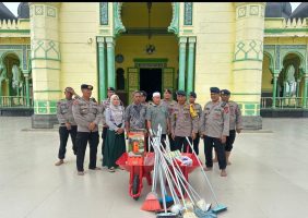 Tak hanya melakukan pembersihan, rombongan Brimob dan Polres Langkat juga menyerahkan bantuan berupa logistik serta perlengkapan kebersihan kepada Badan Kemakmuran Masjid (BKM) Masjid Azizi. Bantuan ini merupakan dukungan dari Kapolda Sumut, Dansat Brimob Polda Sumut, dan Kapolres Langkat yang disalurkan langsung melalui Wadanyon-A Pelopor.