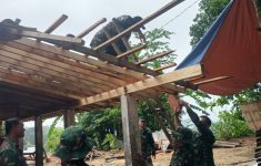 Babinsa Sigap Bantu Evakuasi Pohon Tumbang Timpa Rumah Warga