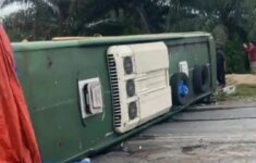 Bus ALS Seruduk Warung Hingga Terbalik, Lima Orang Luka