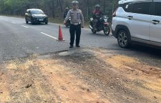 Survey Jalan Berlubang, Satgas Dikmas Satgas Preemtif Polresta Barelang Dukung Operasi Keselamatan Seligi 2026