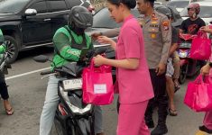 Polsek Lubuk Baja Bersama Bhayangkari Bagikan Takjil kepada Pengguna Jalan