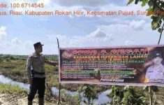 Personel Polsek Pujud Gencarkan Pemasangan Spanduk Himbauan Karhutla