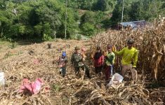 Dukung Program Ketahanan Pangan, Babinsa Koramil 06/Paleleh Bantu Petani Panen Jagung