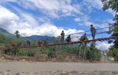 Prajurit TNI Bersama Warga Perbaiki Jembatan Gantung di Aceh Tenggara