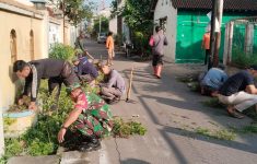 Peduli Kebersihan Lingkungan Babinsa dan Saberling Melaksanakan Kerja Bakti di Wilayah