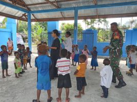 Babinsa Koramil 1710-07/Mapurujaya Tanamkan Rasa Cinta Tanah Air Kepada Siswa Taman Kanak-Kanak Sembari Ajak Bermain