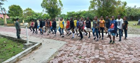 Babinsa Koramil 1710-03/Kuala Kencana Berikan Pelatihan Baris Berbaris pada Siswa-Siswi Baru SMP Katholik Kokonao