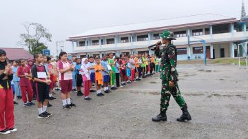 Babinsa Koramil 03 Kuala Kencana Beri Materi Wasbang ke Siswa Baru SMK N 1 Kuala Kencana