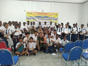 Staf Teritorial Kodim 1710/Mimika Bersama Pramuka Saka Wira Kartika Latih PBB Untuk Upacara Pengibaran Bendera Kepada Siswa Baru SMPN 2 Mimika