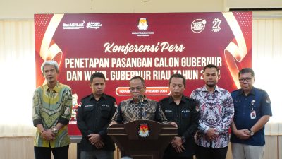 KPU Riau Adakan Konferensi Pers Penetapan Pasangan Calon Gubernur Dan Wakil Gubernur Riau Pada Pemilihan Tahun 2024