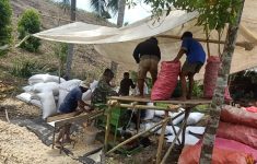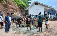 Babinsa Dondo Ajak Warga Labuan Lobo Gotong Royong Bangun Lapangan Voli Desa
