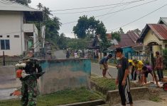 Babinsa Koramil 05 Biau Bersama Masyarakat Bersihkan Bahu Jalan