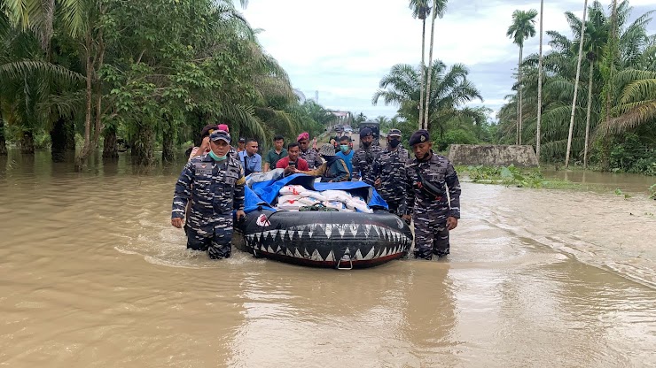 Komandan Pangkalan TNI AL Lhokseumawe Kolonel Marinir Dian Suryansyah, melalui Dansatgas Banjir untuk segera membantu dan memberikan bantuan logistik/sembako kepada warga yang terisolir.