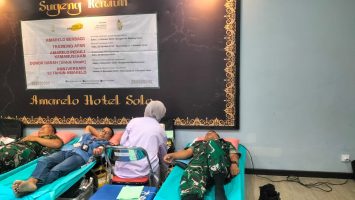 Surakarta – Komandan Koramil (Danramil) 03/Serengan Kodim 0735/Surakarta, Kapten Cba Tri Rusman. P S.Sos, bersama Babinsa Kemlayan Serka Priyanto, menunjukkan wujud nyata kepedulian terhadap sesama melalui kegiatan donor darah. Aksi kemanusiaan ini dilaksanakan dalam rangka peringatan ulang tahun Hotel Amarelo yang ke-13.