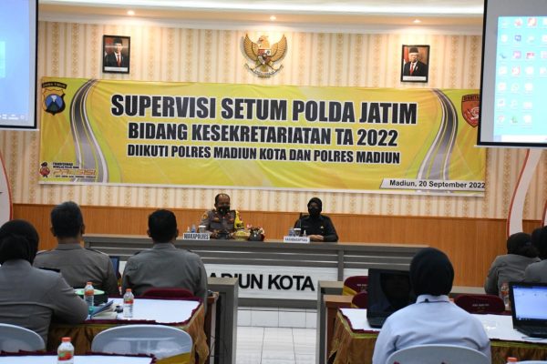 Madiun – Wakapolres Kompol Supriyono,.S.sos menerima kunjungan Supervisi dari Sekretariat Umum (Setum) Polda Jatim dibawah pimpinan AKBP Nurlaili Akromi,SE,.M.Si bersama Tim di Gedung Sunaryo Polres Madiun Kota. Selasa (21/09/22).