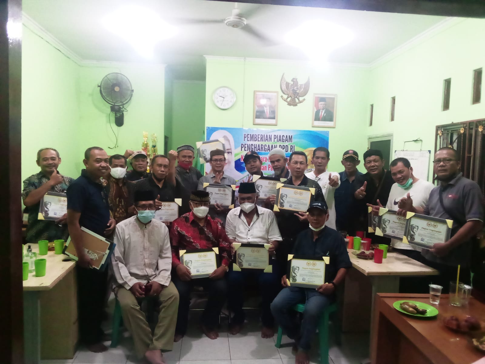 Jakarta – Anggota DPD RI Hj. Fahira Fahmi Idris, SE,MH bersama Ketum Bang Japar berikan piagam penghargaan Garda Terdepan Pencegahan Covid19 kepada Ketua RW 03, Para Ketua RT, Ketua LMK RW 03, Ketua Karang Taruna, Tokoh Masyarakat, Ketua Jumantik dan Ketua Dasawisma bertempat di Kantor Seketariat RW 03 Penggilingan, Cakung, Jakarta Timur.Minggu Malam (09/01/2021).