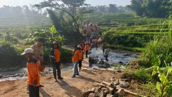Di tengah hamparan sawah hijau yang membentang, puluhan warga bersama aparat TNI terlihat bahu-membahu menyelesaikan pembangunan akses vital yang telah lama dinantikan masyarakat setempat.