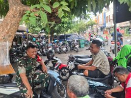 Surakarta – Upaya mempererat hubungan dan menjaga kekompakan di wilayah binaan terus dilakukan oleh personel Tentara Nasional Indonesia (TNI). Kali ini, Babinsa Danukusuman Koramil 03/Serengan Kodim 0735 Surakarta, Serda Tito, melaksanakan Komunikasi Sosial (Komsos) dengan Bapak Suryo di Halaman Pasar Harjodaksino Danukusuman, Serengan, Kota Surakarta, pada Senin (03/11/2025) pukul 09.00 WIB.
