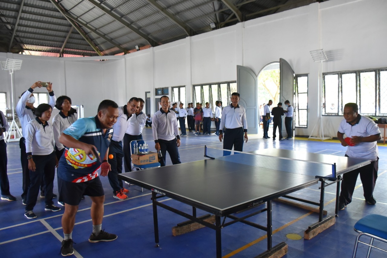 Marauke – Jelang Hari Ulang Tahun (HUT) ke-13, Pangkalan Utama TNI Angkatan Laut ( Lantamal XI menggelar pembukaan lomba Bulu Tangkis dan Tenis Meja antar Kewasgiatan yang berlangsung di Gedung Bapra Mako Lantamal XI, Jalan Noari, Karang Indah, Kabupaten Merauke, Selasa pagi (04/01/2022).