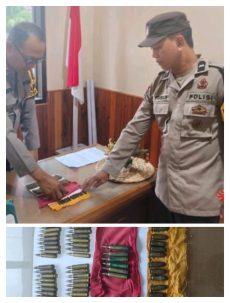 “Dari hasil pengecekan, ditemukan 40 butir amunisi kaliber 5,6 mm dalam plastik hitam, 6 butir amunisi kaliber 5,6 mm dalam kain merah, dan 13 butir amunisi kaliber 9 mm dalam kain berwarna kuning,” jelas AKP Risdiyanto.