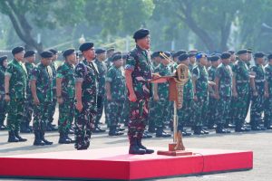 Jakarta – Panglima TNI Jenderal TNI Agus Subiyanto memimpin Apel Khusus dalam rangka kegiatan Halal Bihalal selepas hari Raya Idul Fitri tahun 1446 H/ 2025 M, yang diikuti oleh seluruh prajurit dan PNS Mabes TNI. Apel tersebut dilaksanakan di Lapangan B3 Mabes TNI, Cilangkap, Jakarta Timur, Rabu (9/4/2025).