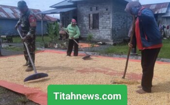 Buol – Dalam upaya mendukung ketahanan pangan nasional, Babinsa Koramil 1305-09/Bokat, Serda Kosmas D. Dewa, melaksanakan kegiatan pendampingan kepada petani dengan membantu proses penjemuran jagung milik Bapak La’u di Desa Modo, Kecamatan Bukal, Kabupaten Buol, Rabu (22/10/2025).