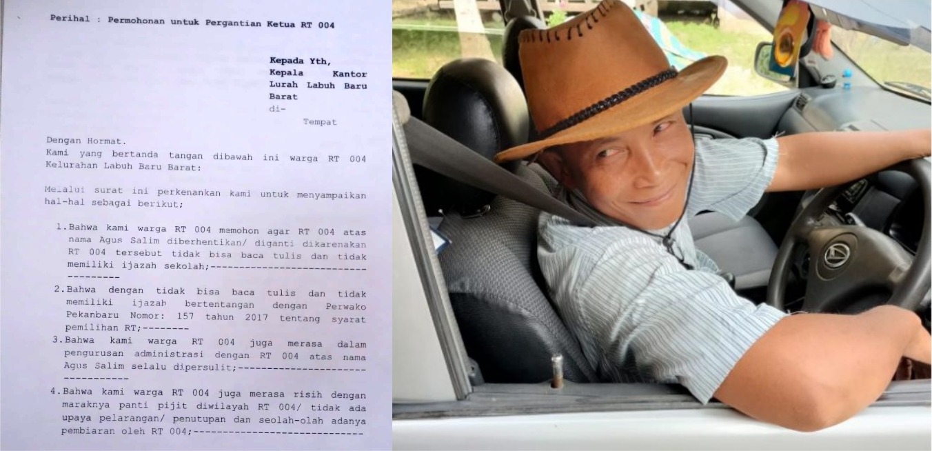 Pekanbaru – Masyarakat RT 04 Kelurahan Labuh Barat Kecamatan Payung Sekaki mempertanyakan Surat Permohonan Pemberhentian Ketua RT 04 agus salim yang ditujukan kepada Lurah Baru Barat Ardiles pada tanggal 21 Mei 2025 lalu.