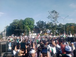 Pekanbaru – Ribuan masyarakat hadir di depan Tugu Perjuangan dalam aksi bela Palestina, Ahad (20/4) pagi. Mereka tergabung dalam Koalisi Riau Bela Palestina itu menyuarakan boikot produk yang terafiliasi terhadap Israel maupun Amerika. Tak hanya itu, massa aksi juga mendesak agar Pemerintah RI untuk mendukung kemerdekaan Palestina.