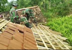 Wonogiri – Keterampilan Satgas TMMD ke-127 tidak diragukan lagi oleh warga Dusun Golo, Desa Kembang. Hal ini terlihat dari kecekatan dan kesiapan personel saat mulai memasang genteng atap rumah milik Sarikem (67), Minggu (1/3/2026).