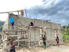 Di tengah ibadah puasa, prajurit TNI bersama masyarakat tetap menunjukkan dedikasi tinggi demi terwujudnya rumah ibadah yang representatif bagi warga.