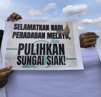 “Di atas sungai tercemar ini kami membentang dan menyampaikan pesan untuk peduli pada sungai dan lingkungan hidup. Untuk memulihkan Sungai Siak dan lingkungan hidup di Riau, pemerintah harus dengan tegas menegakkan hukum dan memaksa perusahaan-perusahaan pencemar dan perusak lingkungan hidup untuk bertanggung jawab melakukan kegiatan pemulihan secara menyeluruh,” sebut Aldi.