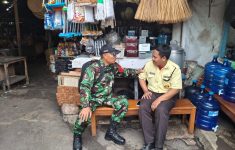 Jalin Komunikasi, Babinsa Danukusuman Sambangi Satpam Pasar Harjodaksino