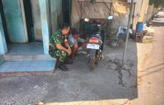 Perkuat Kemanunggalan, Babinsa Kemlayan Jalin Komsos dengan Tukang Tambal Ban