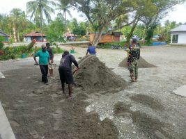 Timika – Menjelang penutupan kegiatan TNI Manunggal Membangun Desa (TMMD) ke-124 personel Satgas TMMD bersama warga setempat melaksanakan gotong royong menata lapangan dengan menimbun pasir yang akan digunakan sebagai lokasi acara bakti sosial saat penutupan. Kegiatan bakti sosial direncanakan akan digelar di Kampung Pigapu, Distrik Iwaka, Kab. Mimika. Senin (02/6/2025).