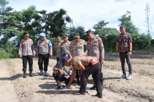 Dumai – Kapolres Dumai, AKBP Angga Febrian Herlambang, S.I.K., S.H., meninjau kesiapan lahan yang akan digunakan untuk penanaman jagung pipil di Kecamatan Bukit Kapur, Jumat (3/10/2025).